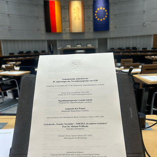 Gedenkstunde zum 85. Jahrestag der Novemberprogrome von 1938Team-Atli3. März 20241 Min. LesezeitVor Beginn der heutigen Plenarsitzung findet eine Gedenkstunde anlässlich des 85. Jahrestages der Novemberprogrome statt.