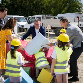 Dies ist eine tolle "Mit - Mach -Werkstatt", direkt auf einer künftigen Baustelle, die von der Gewobag angeboten wird, um potentielle Nachwuchskräfte für das Handwerk zu begeistern.